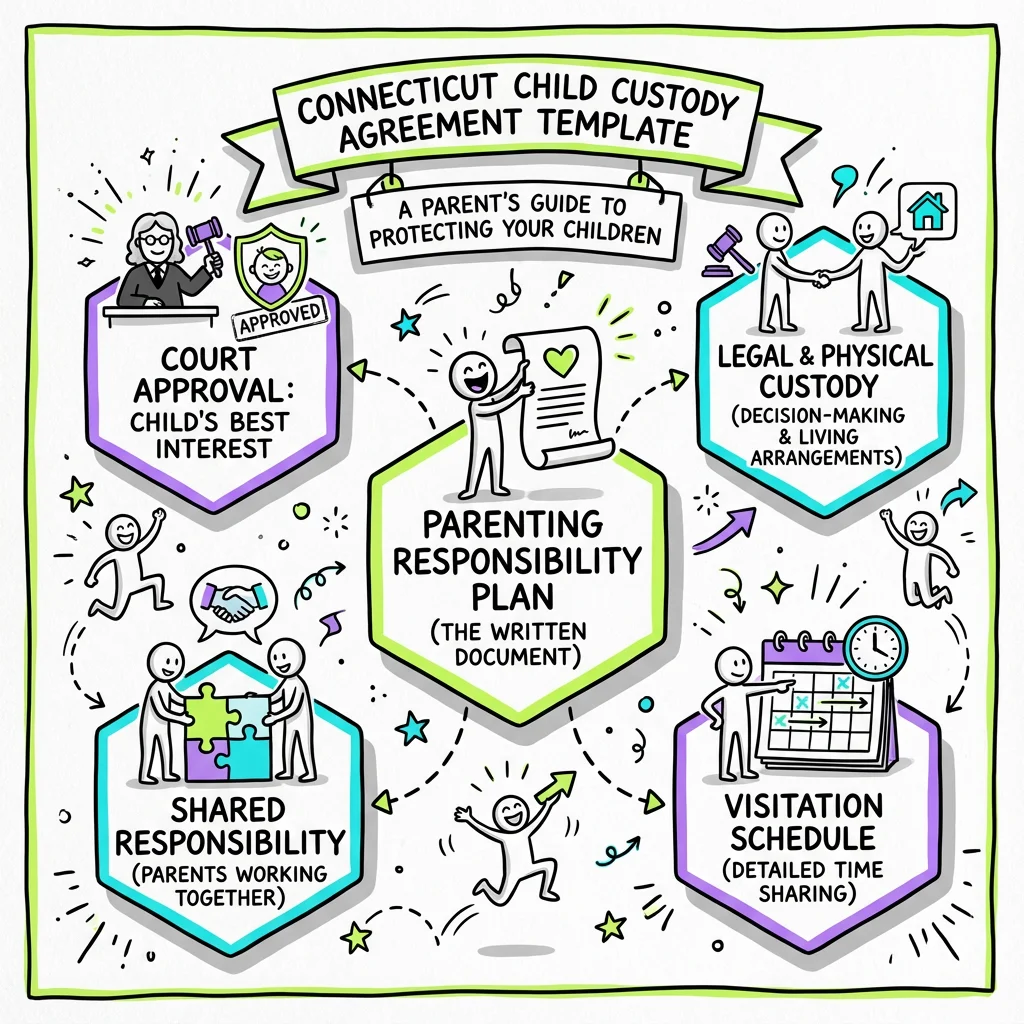 Learn how to create a comprehensive Connecticut child custody agreement that protects your children's wellbeing. Includes required elements, parenting plans, and legal guidelines.