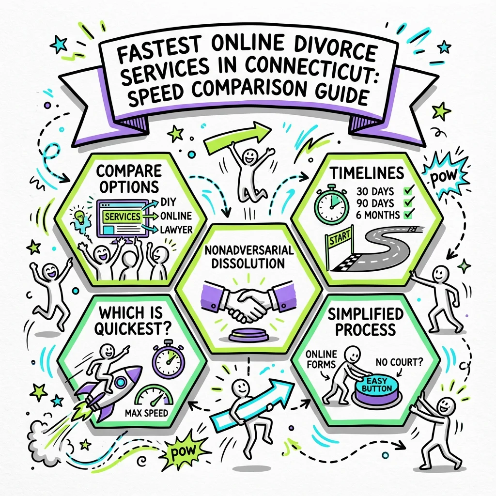 Compare the fastest online divorce options in Connecticut. Learn about nonadversarial dissolution, timelines, and which service gets you divorced quickest.