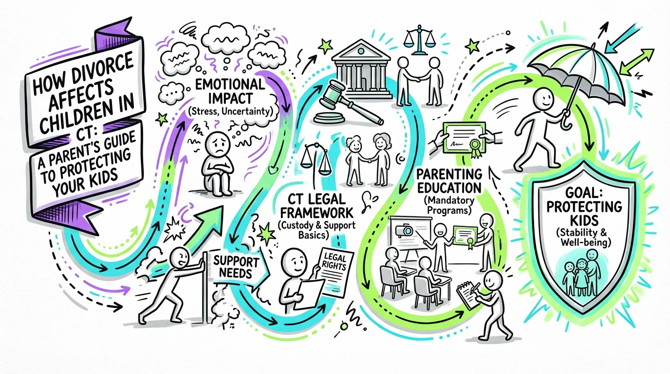 Learn how divorce affects children emotionally and legally in Connecticut. Understand custody, support, and parenting education requirements to protect your kids.