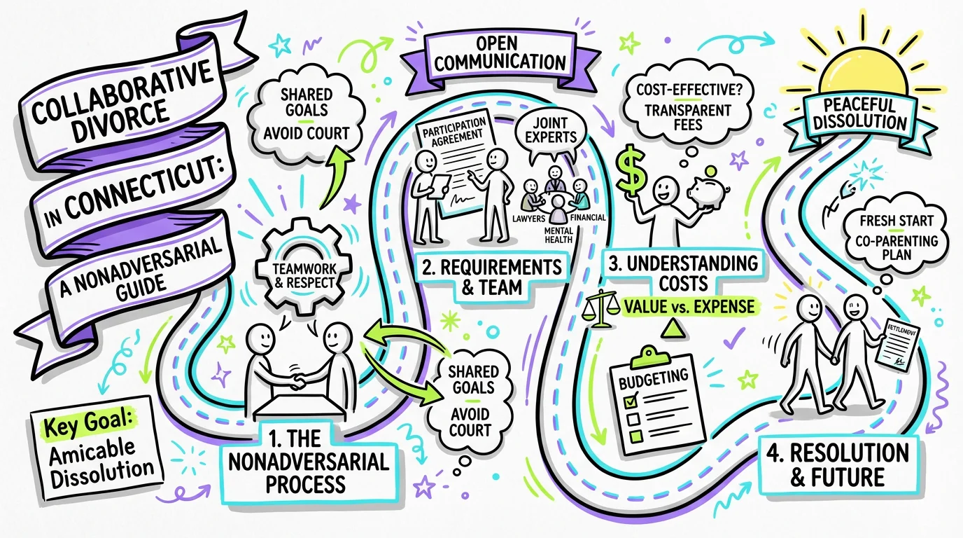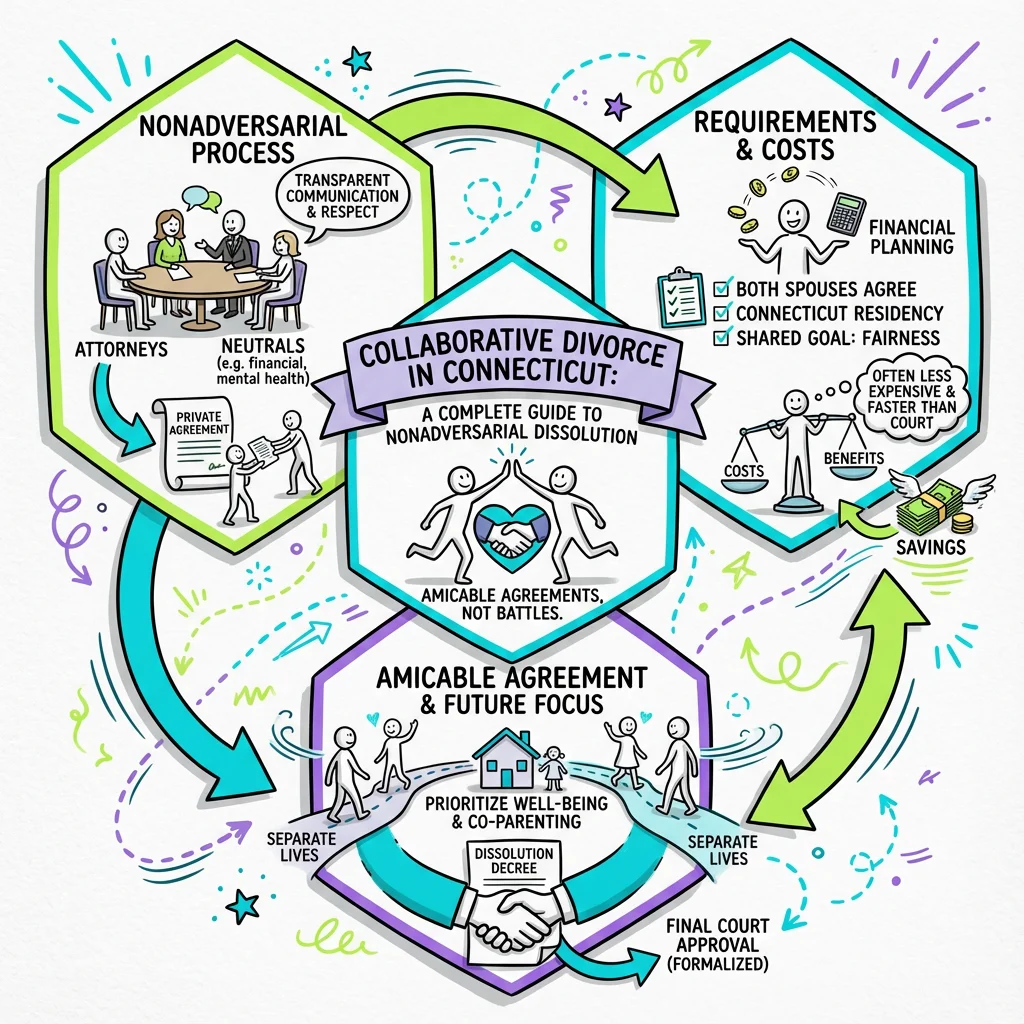 Learn how collaborative divorce works in Connecticut, including the nonadversarial dissolution process, requirements, costs, and how couples can divorce amicably.